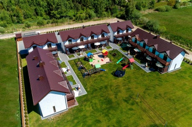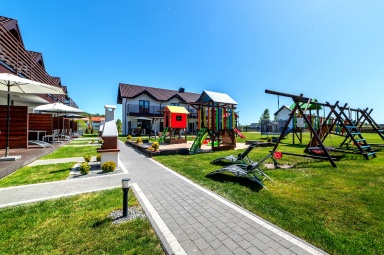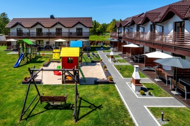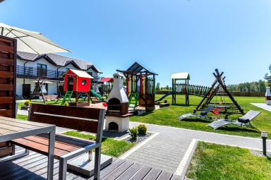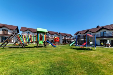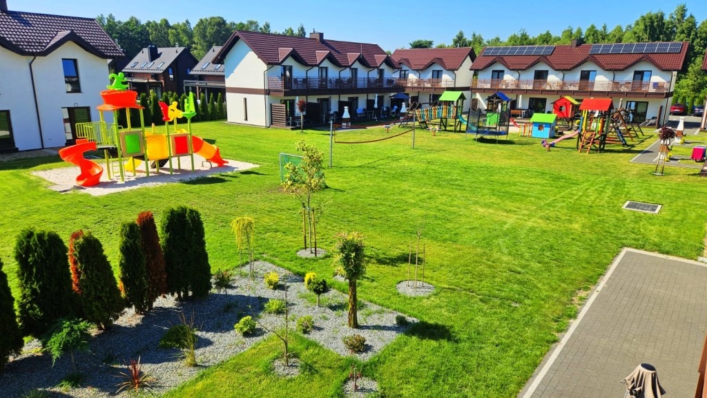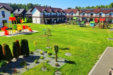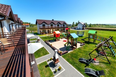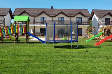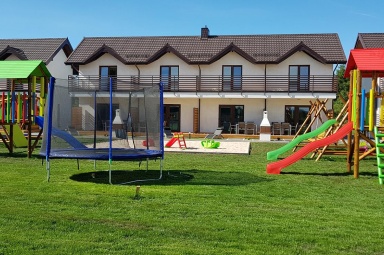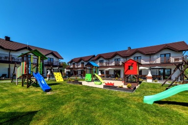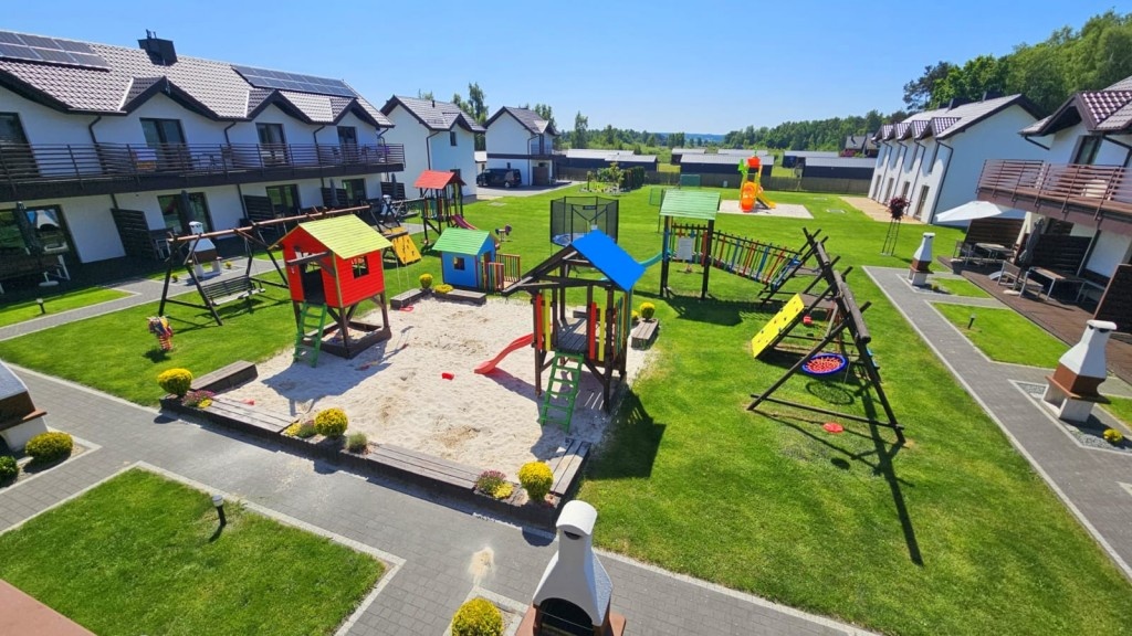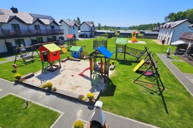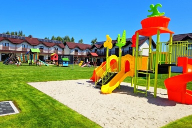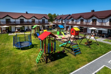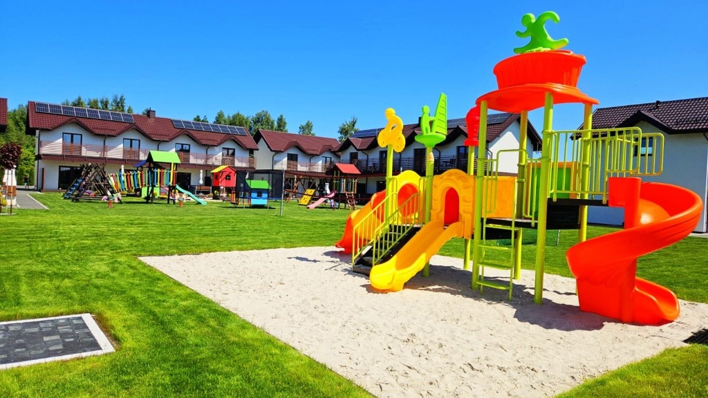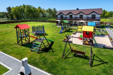- Duży, atestowany plac zabaw z huśtawkami i zjeżdżalniami.