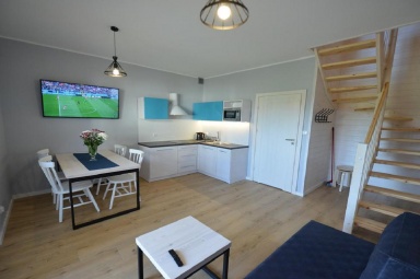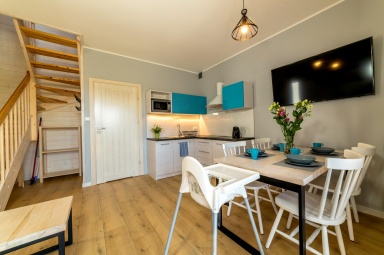 Oferujemy przestronne, dwupoziomowe apartamenty, które zapewniają wygodę i prywatność. Każdy lokal jest ogrzewany (komfort cieplny w majówkę i chłodniejsze dni) oraz w pełni wyposażony.